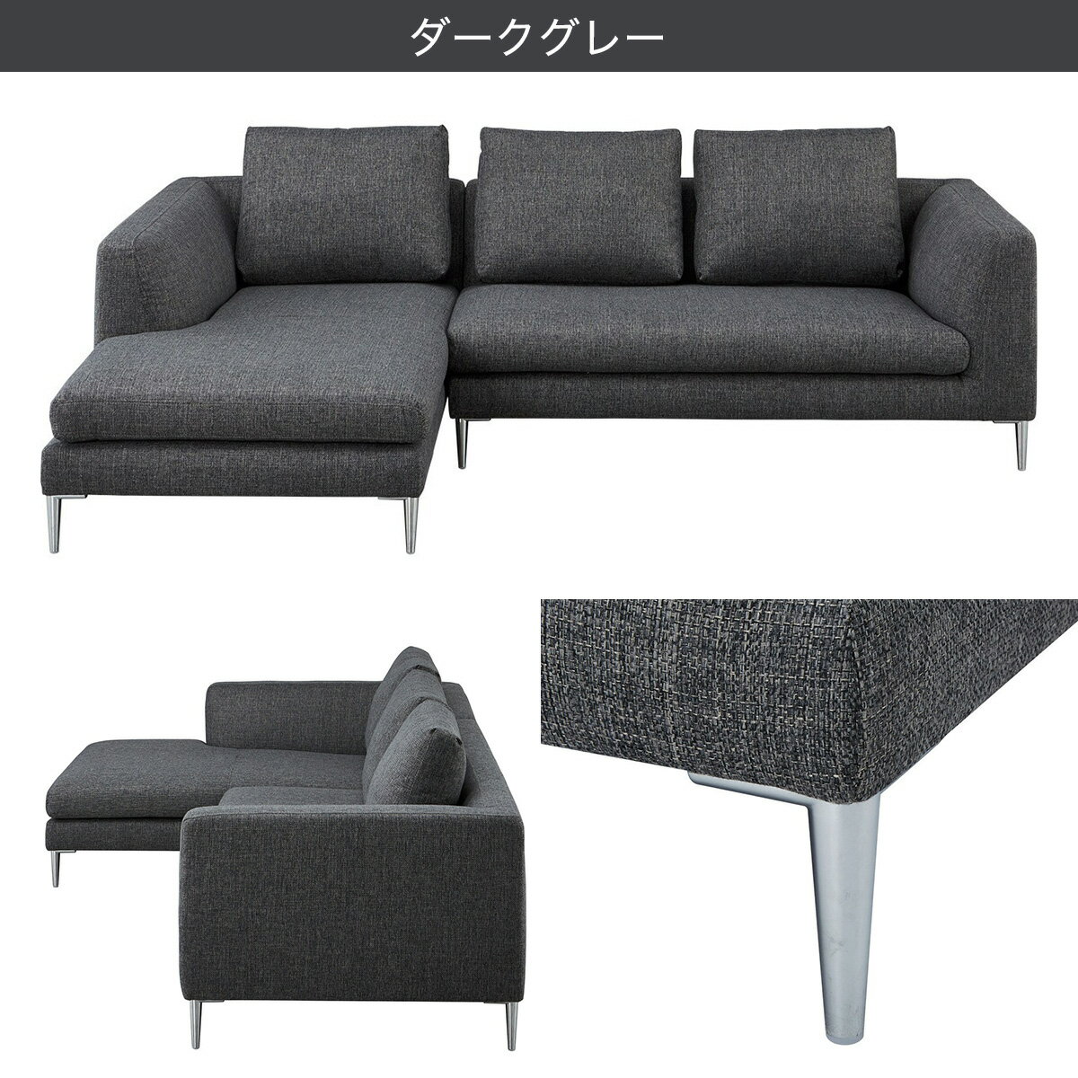布張りカウチソファ(KK8160) 右カウチ 左カウチ ベージュ ダークグレー ニトリ 【配送員設置商品】 |