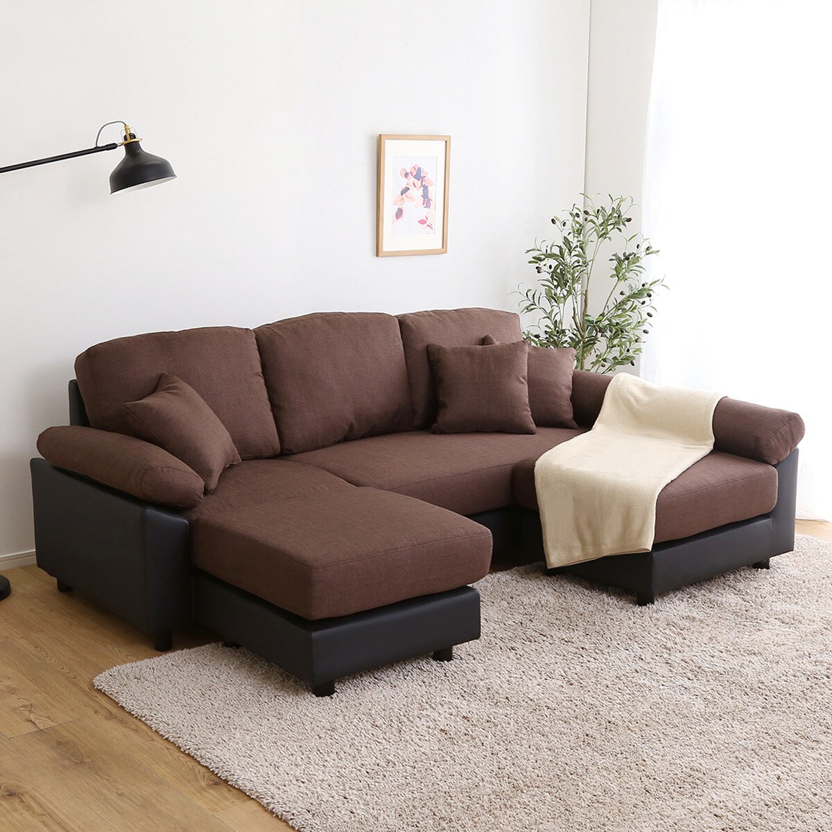 [幅197cm] PVC×布張り5人掛けコーナーカウチソファ (BR/BK) ニトリ 【配送員設置商品】 【5年保証】 |