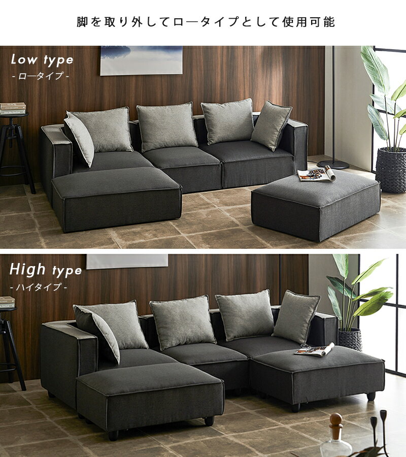 【14日10:00〜P5倍&最大2000円クーポン】ソファ カウチソファ 大型 グレー ファブリック 4人掛け 人気 大人 新築 お洒落 ソファー 組み換え 北欧 シンプル インテリア シック カウチ かっこいい おしゃれ リビング 引っ越し 完成品 脚付き 肘付き 4人用 送料無料 |
