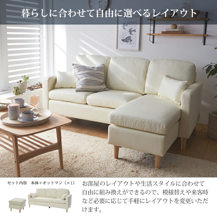 合皮 カウチソファー 3人掛け ソファー ソファ レイアウト自由 三人掛け ローソファー フロアソファ おしゃれ sofa PVレザー オットマン シンプル 高級感 シック クッション付き お手入れ簡単 アイボリー ダークブラウン ブラック |