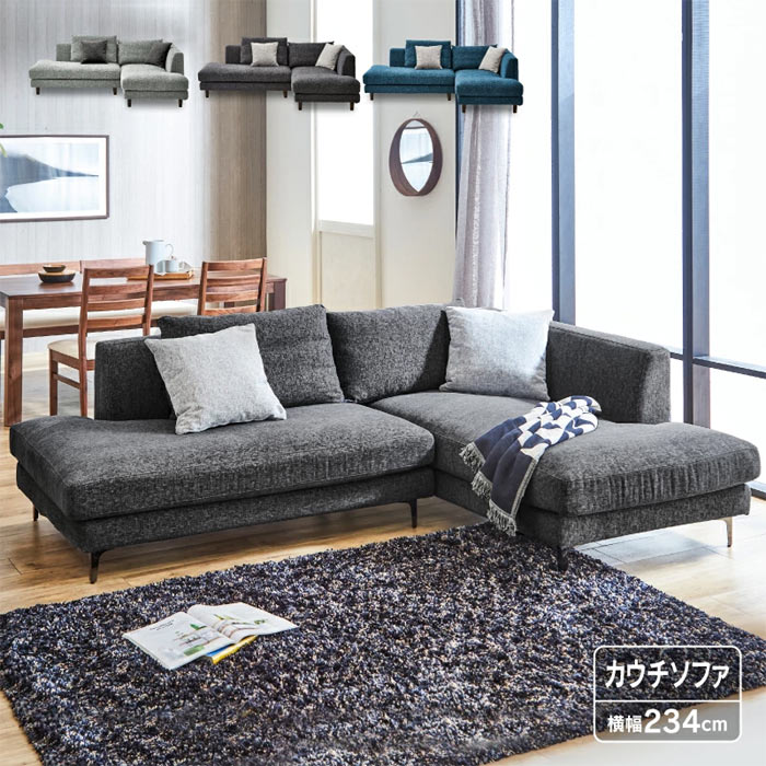 カウチソファ (2P+カウチ)幅234cm フルカバーリング ファブリック スタイリッシュ 鉄脚 木脚 ブルー系 グレー系 3人掛 三人掛 北欧 デザイン おしゃれ お洒落 SOK 開梱設置送料無料 QOG-220 ソファ カウチソファー そふぁ sofa リビングソファー |