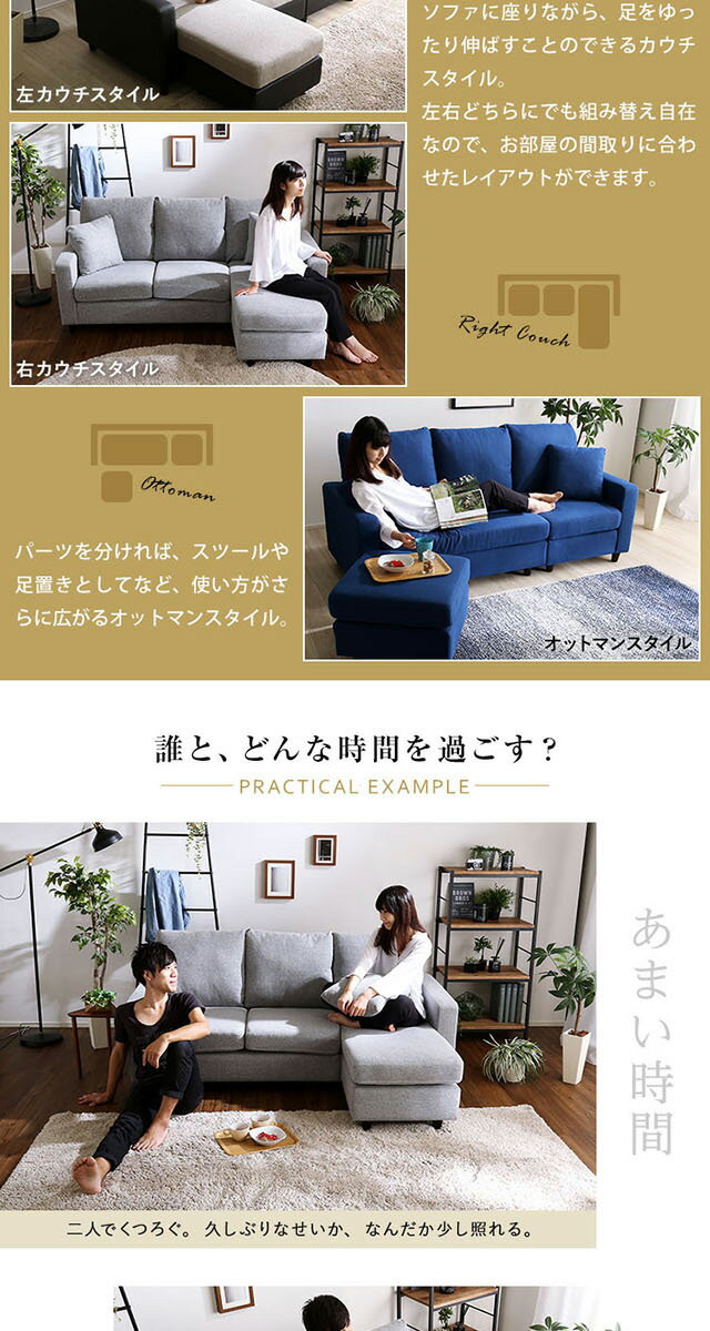 レイアウト自在! 3人掛けカウチソファ【Wismon -ウィスモン-】 (ポケットコイル入り 選べる8色)【代引不可】 [03] |