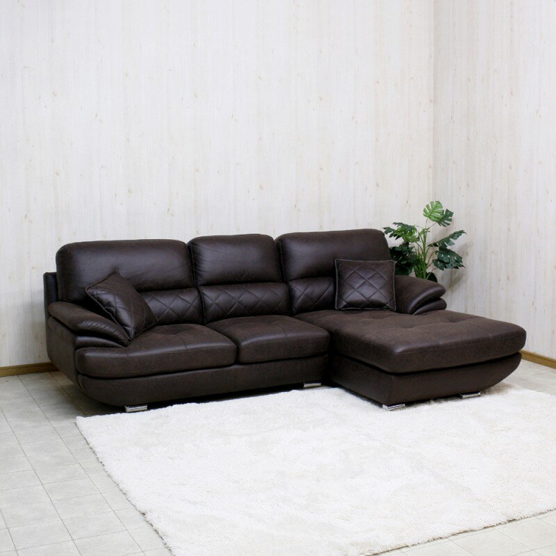 カウチソファー ソファー ソファ 三人掛け クッション二個付き フェイクレザー ダークブラウン ライトブラウン 合皮(代引不可)【送料無料】 |