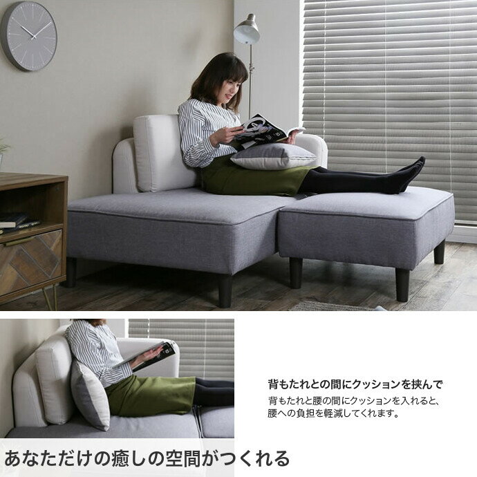 ソファ カウチソファ 3人掛け オットマン付き グレー ナチュラル モダン おしゃれ 3way コーナー ローソファ フロアソファ L字 l字 ファブリック モノトーン(代引不可)【送料無料】 |
