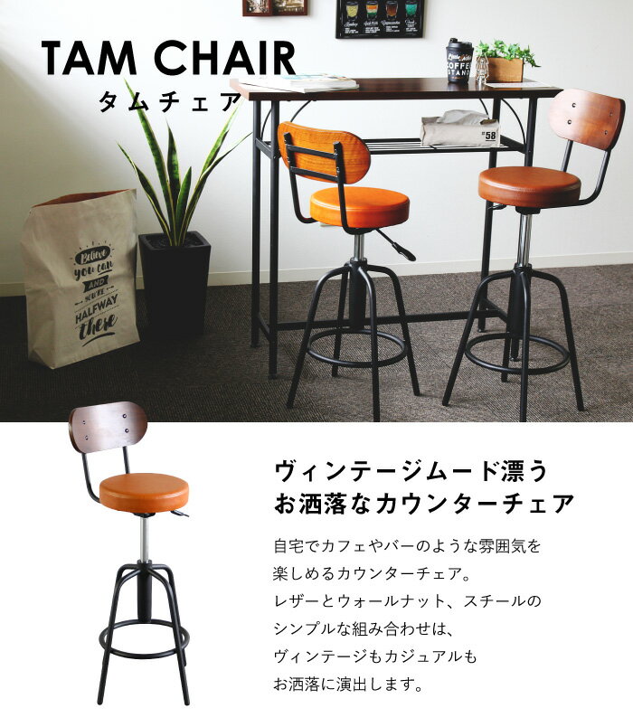 【倉庫受取限定】 カウンターチェア カウンターチェアー 木製 背もたれ付き 北欧 バーチェア スツール 回転 座面昇降 レトロ スチール お洒落 バー TAM-3-SO |