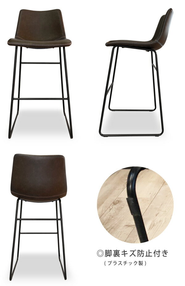 カウンターチェア バーチェア ハイチェア 2脚セット ソフトレザー アイアン ヴィンテージ風 おしゃれ モダン |