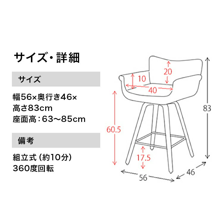 カフェ チェア 椅子 カウンターチェア 背もたれ付き 回転 ダイニングチェア ハイカウンターチェア バーチェア 昇降 カウンター ダイニング 北欧 おしゃれ アイボリー/キャメル/ダークブラウン/ブラック 【組立品/完成品が選べる】 |