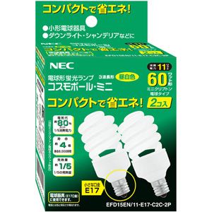 【在庫あり】 NEC コスモボールミニ 60W形電球形蛍光灯 口金 E17 EFD15EN/11-E17-C2C-2P 昼白色 |
