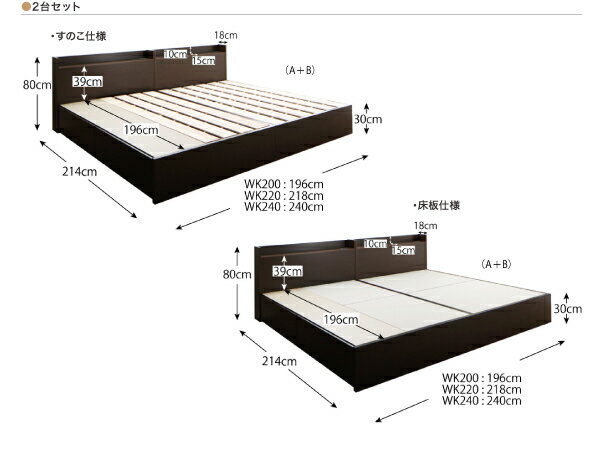 ベッド 低床 連結 ロータイプ すのこ 木製 LED照明付き 棚付き 宮付き コンセント付き シンプル モダン ブラウン ワイドキング240(SD+SD) ポケットコイルマットレス付き【送料無料】 (代引不可) |