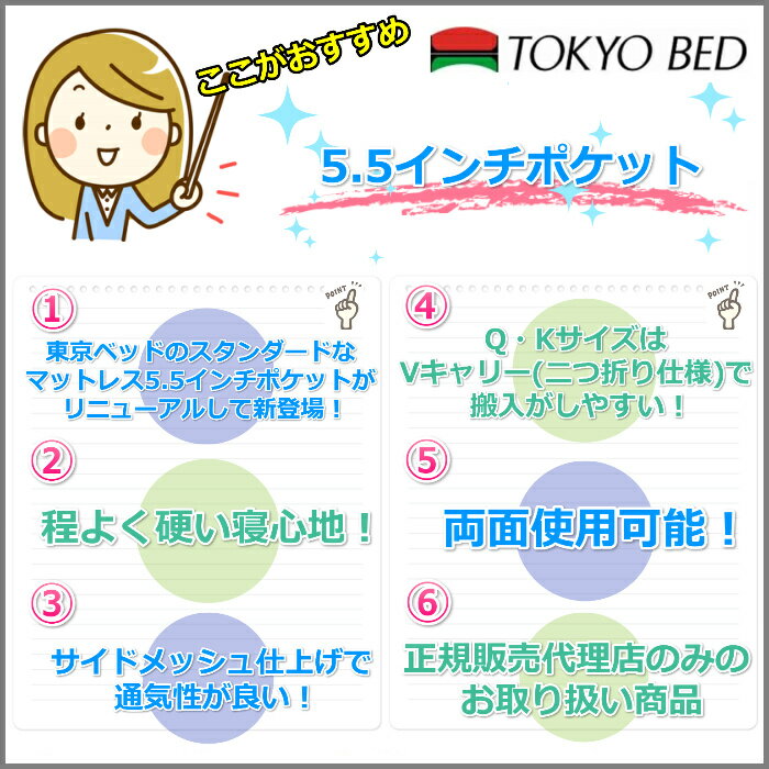 東京ベッド マットレス 5.5インチポケット キングサイズ【送料・搬入開梱設置無料】 程よく硬めな寝心地搬入がしやすいVキャリー仕様 |