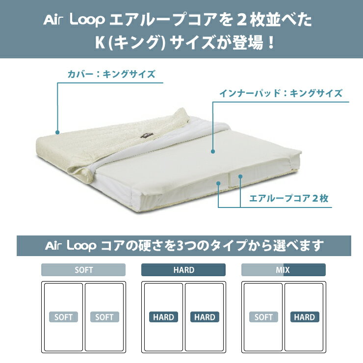 日本製 ノンコイルマットレス エアループ MA-X クロス K キングサイズ 2コア ハード/ソフト/ミックス ウィドゥ・スタイル テンセル ミルキー色 WeDOstyle ウォッシャブル |