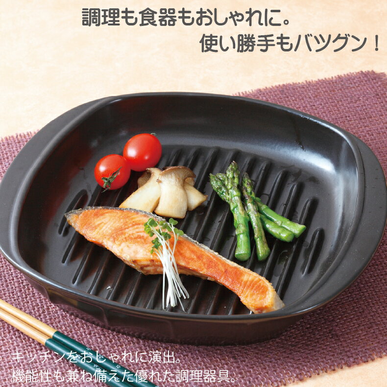 土鍋 【おいしく作れる】 スキレットパン セラミックスグリルパン 両手型 ノンフッ素加工 黒 多用途 健康 お手入れ簡単おすすめ トーセラム 両手型スキレットパン TSP/PF41aa (直火用)日本製 |
