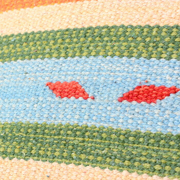 【15%OFFクーポン対象】やわらかな織りのカイセリ産キリム チェイレキ113×81cmオレンジ/グリーン |