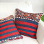 オールドキリム クッションカバー40cmサイズ Old Kilim Cushion ブルー&レッド シンプルボーダー&ジジム |