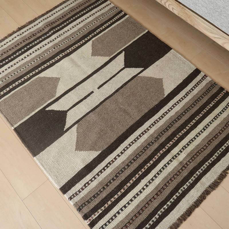 キリム イラン製 玄関マット95×57cm 手織り 小さめ ラグ ウール 100% おしゃれ 北欧 エスニック アジアン 夏用 洗える ホットカーペット対応 床暖房対応 ラグマット 絨毯 スマック織り アゼルバイジャン kilim (品番:KSS-787) |