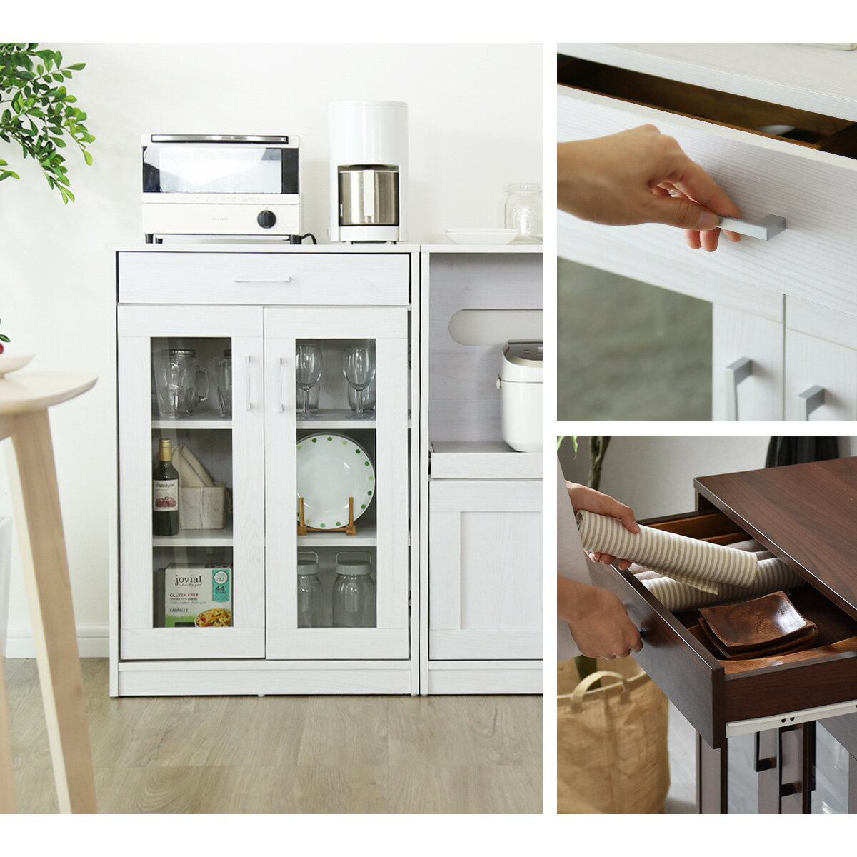 【クーポン10%off 6日00時〜9日24時】 キッチン 収納 引き出し 引出付き 収納付き キッチンラック キッチンワゴン レンジワゴン レンジ台 隙間収納 ガラス棚 食器棚 幅60 一人暮らし ロータイプ 引出し ガラス扉 カップボード 北欧 モダン おしゃれ リリーロー ドリス |