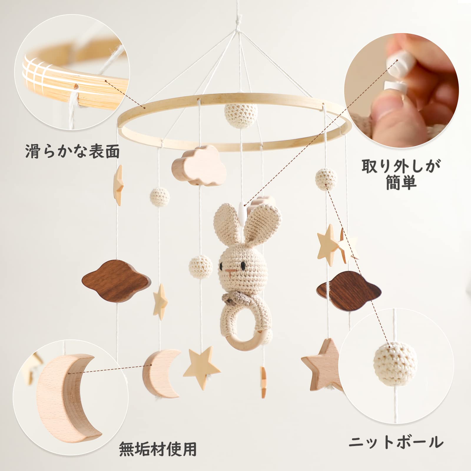 【送料無料】Etucdose ベッドメリー 木製モビール 月と雲型 星型 壁飾り 風鈴 ゆらゆら 柔らかい 吊り下げ式 癒し ベッド飾り 壁飾り 寝かしつけ用品 子供用寝具 木のおもちゃ 出産準備 出産祝い プレゼント うさぎ |