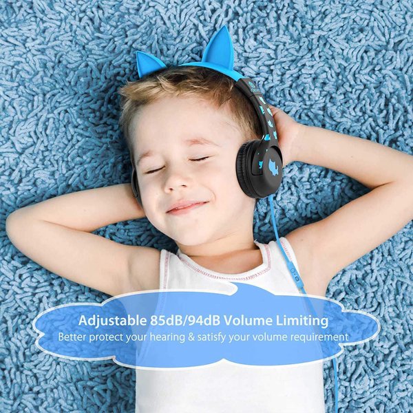 ヘッドフォン ヘッドホン ヘッドセット キッズ 子供用 ライトブルー ネコ耳 3.5mmアダプタ 有線 小型 スマホ タブレット |