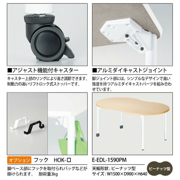 学習机 塾用テーブル セミナーテーブル キャスター付き E-EDL-1590PM 幅1500x奥行900x高さ640mm ピーナッツ型 学校 学童保育 学習塾 子供用テーブル キッズテーブル 長机 なが机 |