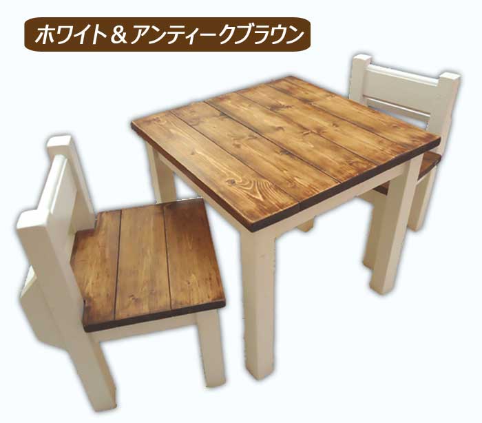 オリジナル ハンドメイド 天然木 無垢材 子供用 キッズ用 テーブル(単品)【ホワイト&アンティークブラウン】子供用イス キッズテーブル チャーチ チャペル 教会 お絵描き アンティーク調 ヴィンテージ |