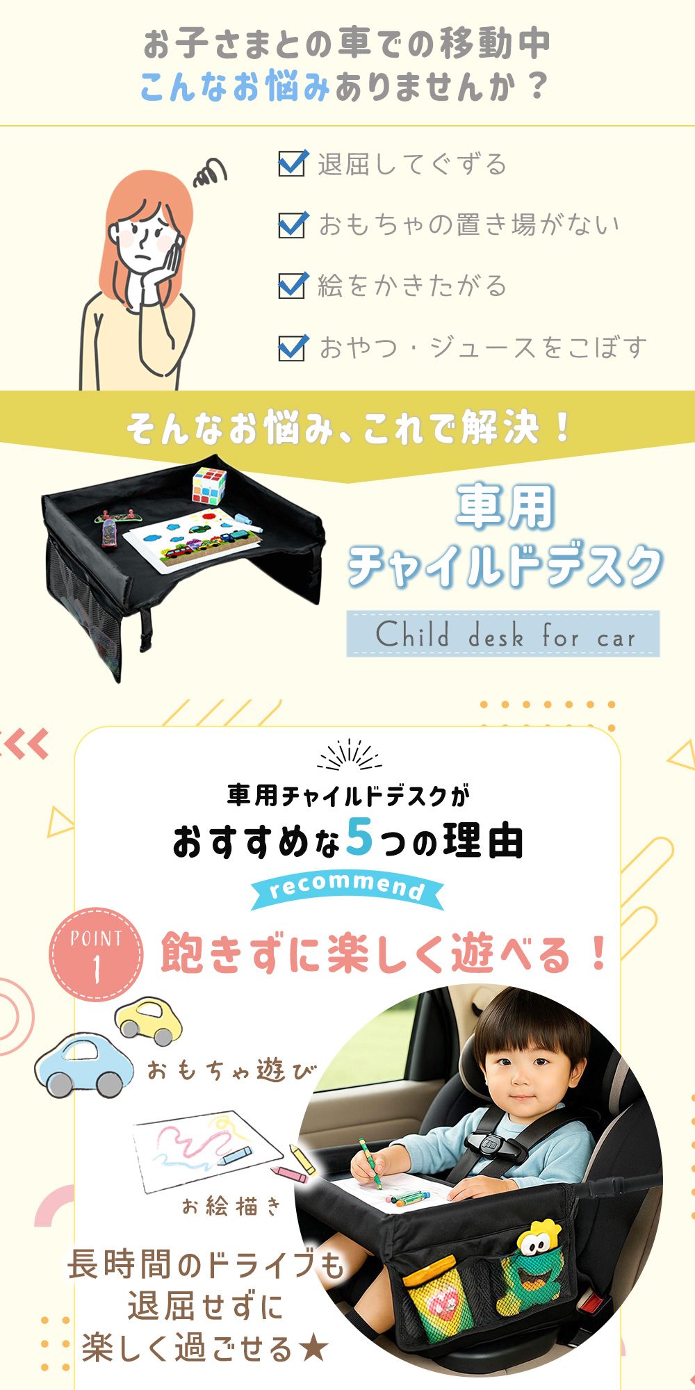 チャイルドトレイ チャイルドデスク 食べこぼし防止 テーブル ベビーテーブル お絵かきテーブル 食事遊び 防水 撥水 車載収納 小物入れ 車用品 車内収納 折り畳み かわいい キッズテーブル |