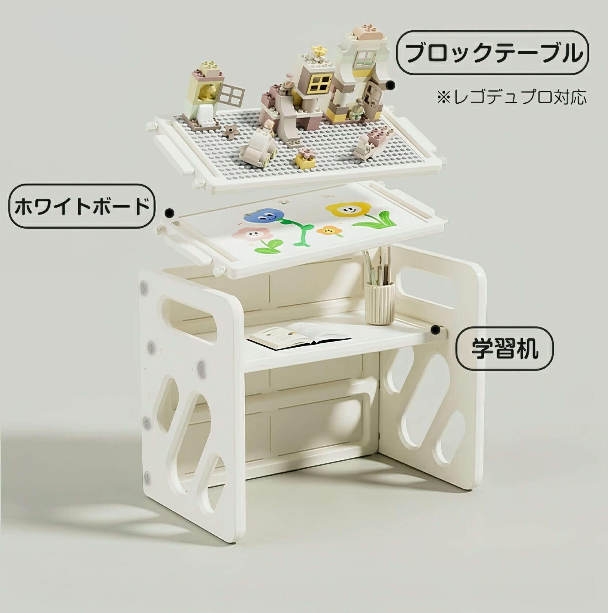 子ども用テーブル 椅子セット ブロックプレイ キッズデスク チェアー 多機能 ブロックテーブル 高さ調節可能な子供用テーブルとチェプレイ/学習/絵かき/ダイニン |