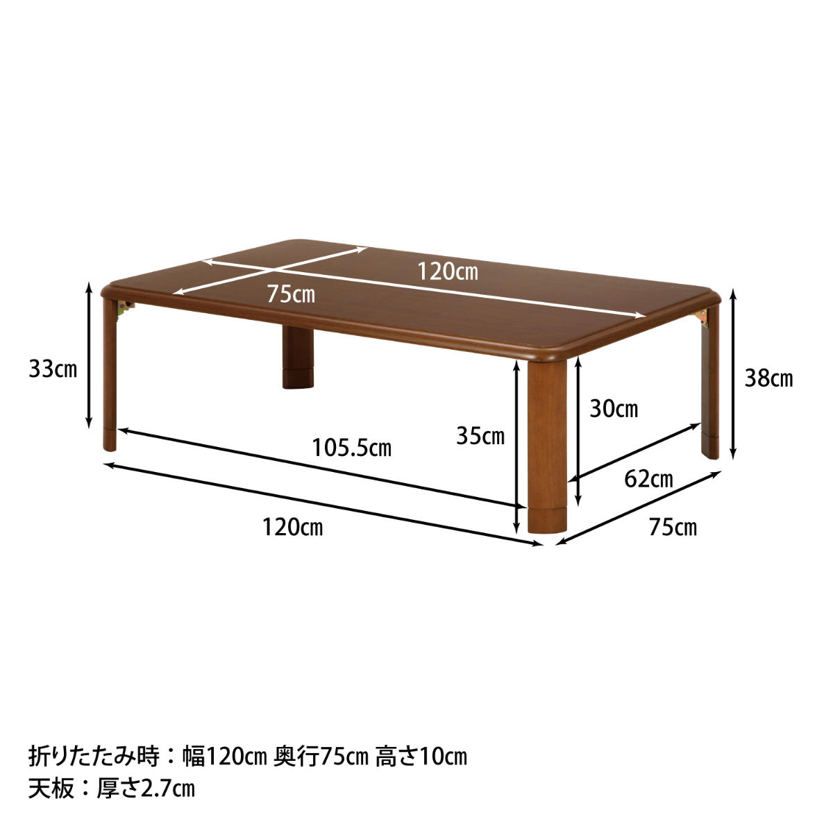 ローテーブル 幅120×奥行75×高さ33・38cm 軽量折りたたみ座卓 継脚付 ( リビングテーブル センターテーブル テーブル 折りたたみ 簡易テーブル キッズテーブル シンプル 和モダン ) |