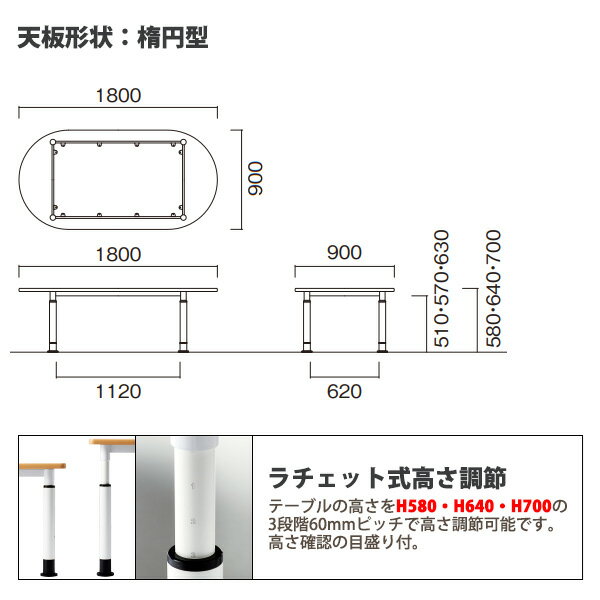 学習机 塾 学習デスク 高さ調節 上下昇降 キャスター付き E-EHL-1890R 幅1800x奥行900x高さ580・640・700mm 楕円型 塾 セミナー 講義 学校 学童保育 子供用テーブル キッズテーブル 学習机 長机 |