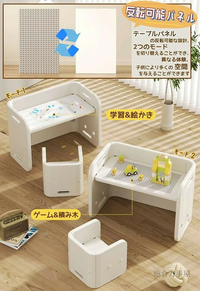 子供用テーブルと椅子 3点セット ブロックテーブル 子ども用テーブル 椅子セット 多機能 収納 キッズ家具 リビング学習 絵かき 入園祝い ホワイト |