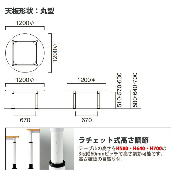 学習用テーブル 高さ調節 上下昇降 キャスター付き E-EHL-1200R Φ1200x高さ580・640・700mm 丸型 塾 セミナーテーブル 学校 学童保育 子供用テーブル キッズテーブル 長机 |