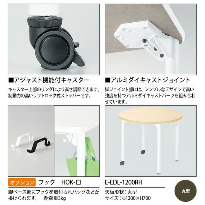 学習机 塾 学習デスク キャスター付き E-EDL-1200RH Φ1200x高さ700mm 丸型 塾 セミナー 講義 学校 学童保育 子供用テーブル キッズテーブル 学習机 長机 なが机 |