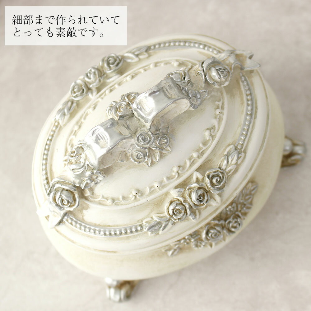 ギフト 小物入れ オーバル フレンチシルバー ジュエリー ボックス ホワイト かわいい プレゼント 薔薇雑貨 姫系 おしゃれ 収納 アクセサリー クリスマス |