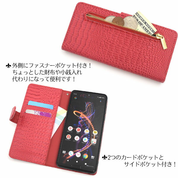 送料無料 AQUOS R5G SH-51A/SHG01/ 908SH クロコダイルレザーデザイン手帳型ケース 2020年3月発売 5Gモデル アクオス アールファイブジー シンプル スマホケース スマホカバー 手帳型 二つ折り 横開き ワニ柄 小物入れ チャック付き ポケット メール便 |