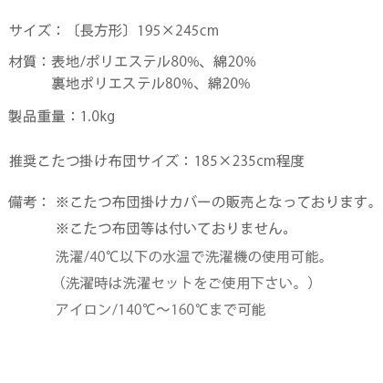 ハイタイプ こたつ布団 掛け単品235cm×290cm「長方形150cm」用※代引き不可 こたつ 掛け布団 薄掛け 節電 エコ おしゃれ 和風 洋風 保温 軽量 コンパクト こたつ掛け布団 こたつ掛布団 長方形 コタツ布団 |