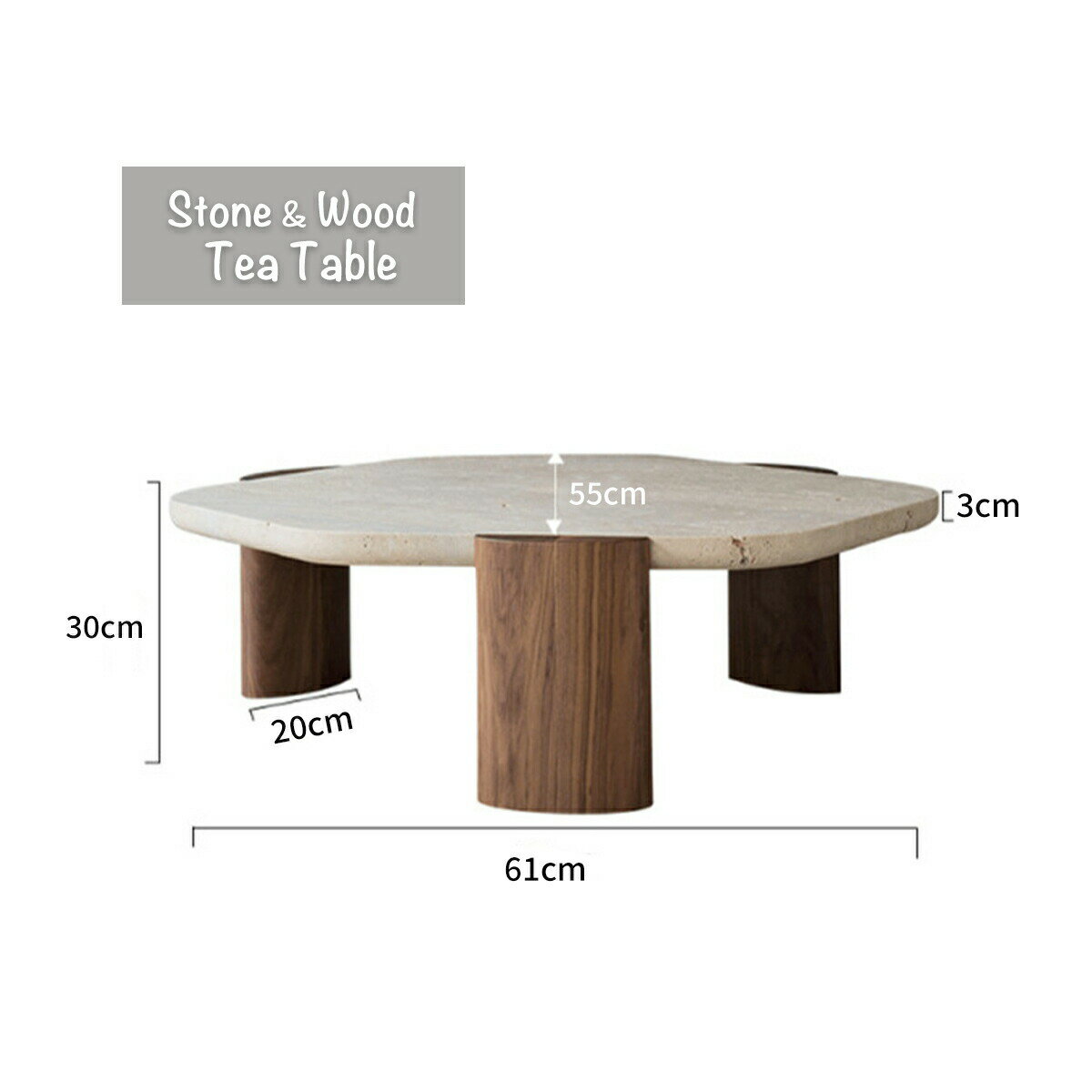 [小サイズ] VeroMan 天然石 ローテーブル コーヒーテーブル ティーテーブル マーブル柄 オークウッド 3本脚 モダン おしゃれ 韓国インテリア 高さ30cm |