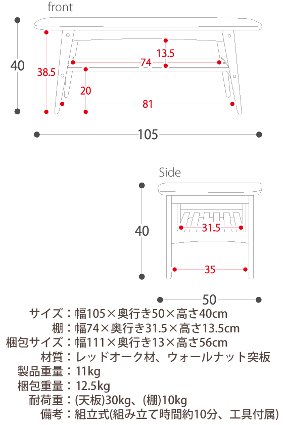 【送料無料】レグナテック社製コーヒーテーブル コット(れんが)2サイズ対応(95/115)2素材対応(WN/OAK)送料無料(玄関前配送)北海道、沖縄、離島は別途お見積り |