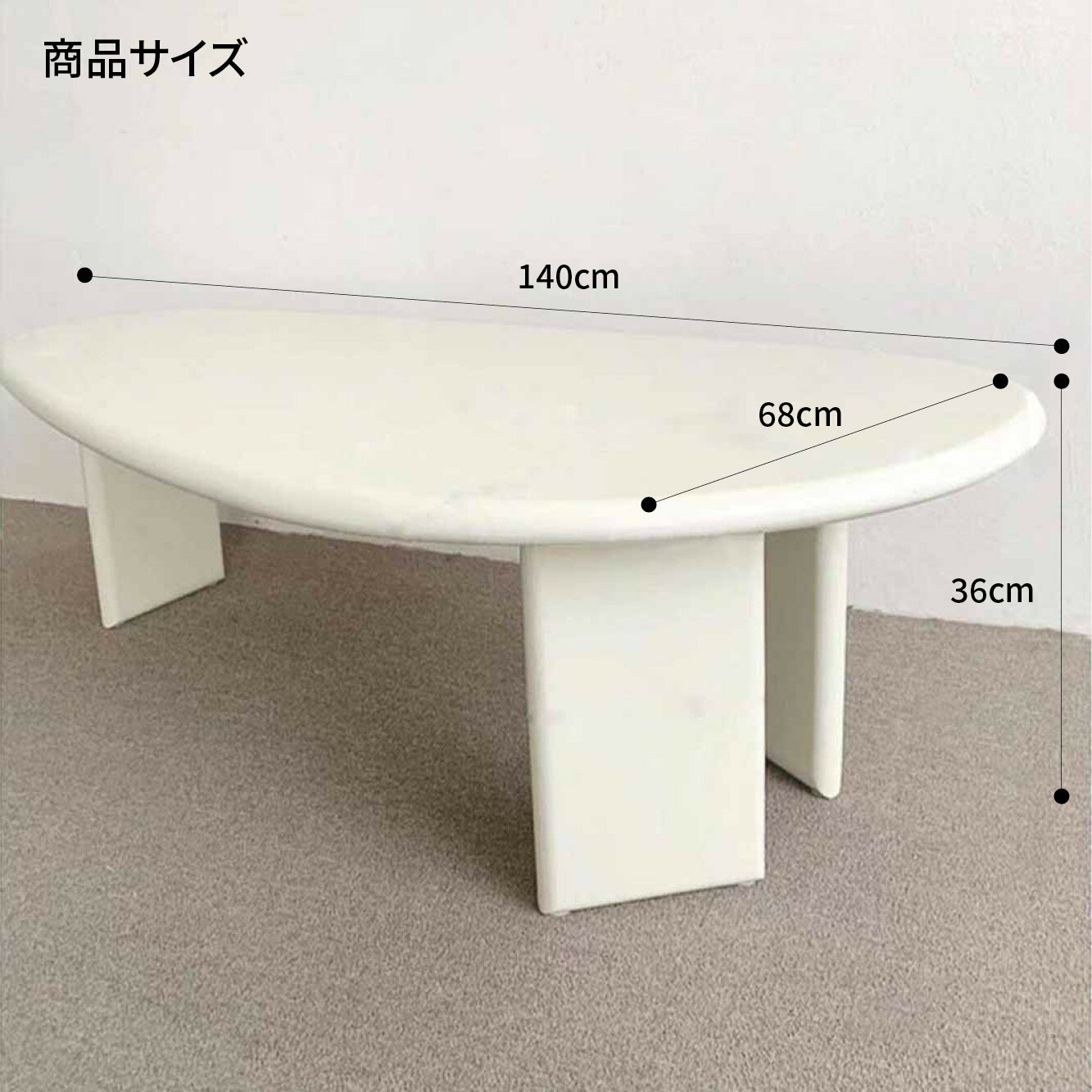 [140cm] VeroMan たまご型 コーヒーテーブル 楕円形 ローテーブル ビーンズ 豆 テーブル ホワイト クリーム リビングルーム 韓国インテリア |