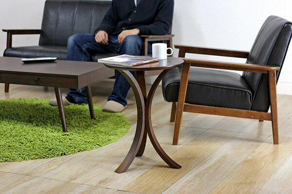 テーブル サイドテーブル 丸 ダークブラウン 77662 | コーヒーテーブル ベッドサイド 木製 北欧風 曲木 |