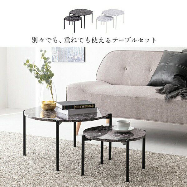 【ランキング1位受賞】 テーブル サイドテーブル ナイトテーブル 大理石調天板 ネストテーブル 丸型2個セットLT-4666 セット 重ね サイド ナイトテーブル コーヒーテーブル |