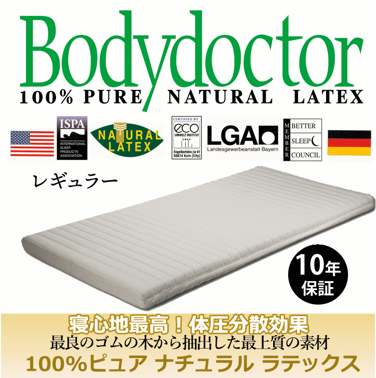 ボディドクターマットレス シングルサイズ R レギュラー 「正反発」の力で無理のない寝姿勢。寝心地最高!体圧分散効果 抜群の耐久性・安心の天然素材100% 天然の抗菌力♪、ダニも寄り付きにくい 世界の評価機関から高い評価 10年間保証 【送料無料】 |