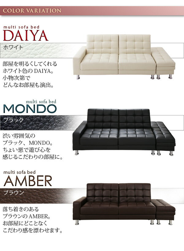 マルチソファベッド ワイドソファー ソファーベッド スツール付き コーナーソファー レザー 合成皮革 (DAIYA ダイヤ) 送料無料 |