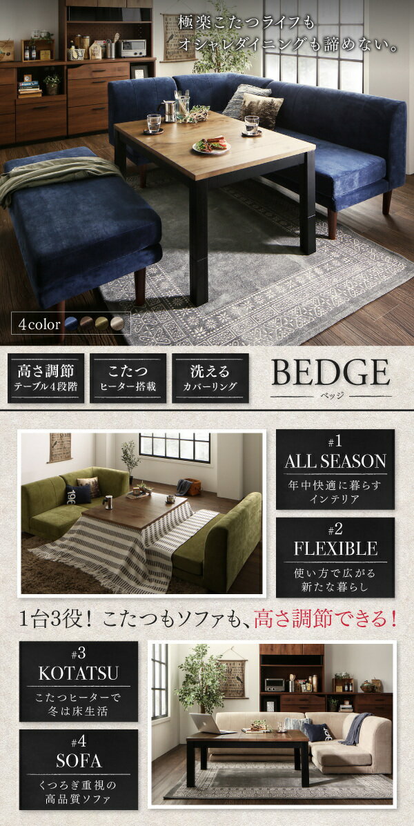 年中快適 こたつもソファも高さ調節 リビングダイニング BEDGE ベッジ ダイニングソファ コーナー 「コーナーソファ 1人掛け ゆったり 高さ調節 洗える カバーリング 」 |