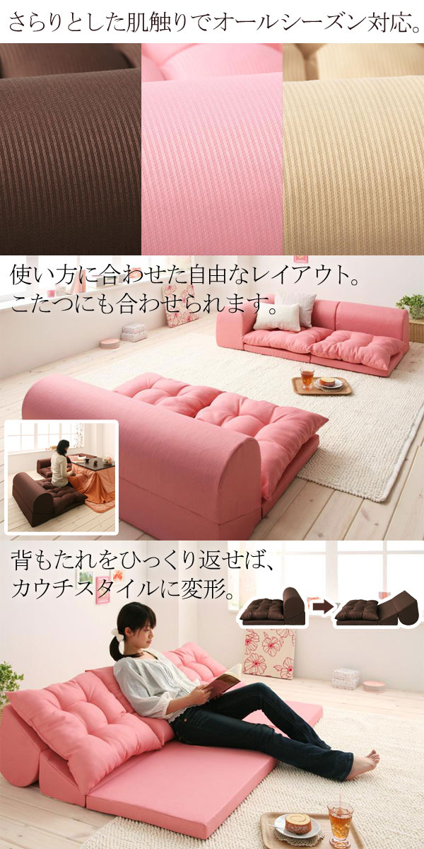 【送料無料】【日本製】 洗えるカバーの 展開式 フロアソファ 「IMONIA」 カバーリング コーナーソファ ローソファ 3点セット |