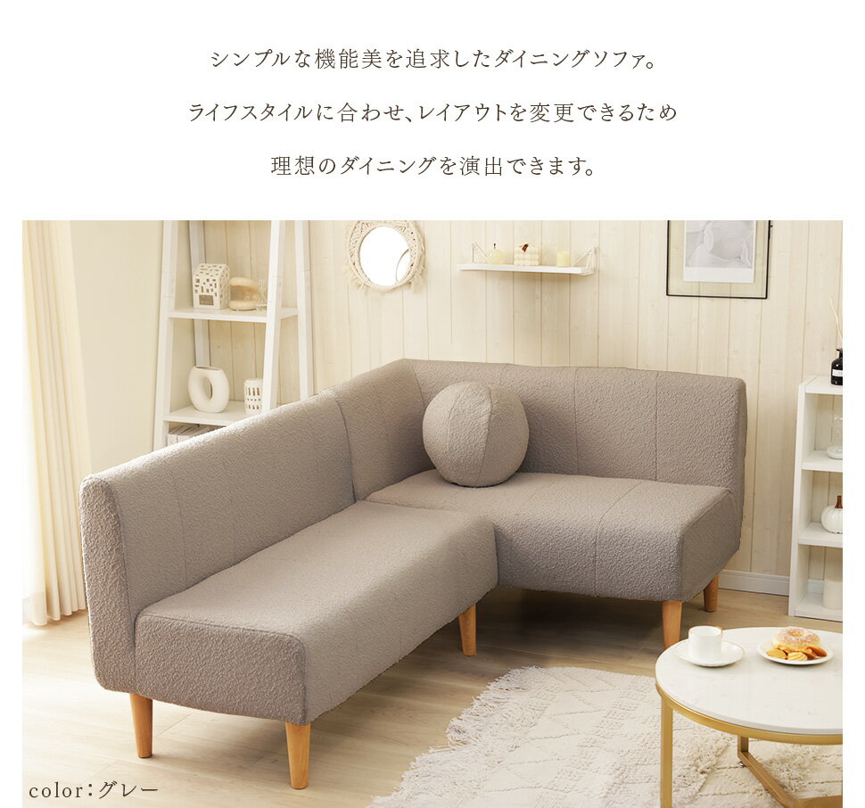 ダイニングソファ ブークレ生地 コーナーソファ 二人掛けソファ 2点セット 肘掛け 背もたれ 脚付 レイアウト自由 シンプル おしゃれ もこもこ セット 日本製 |