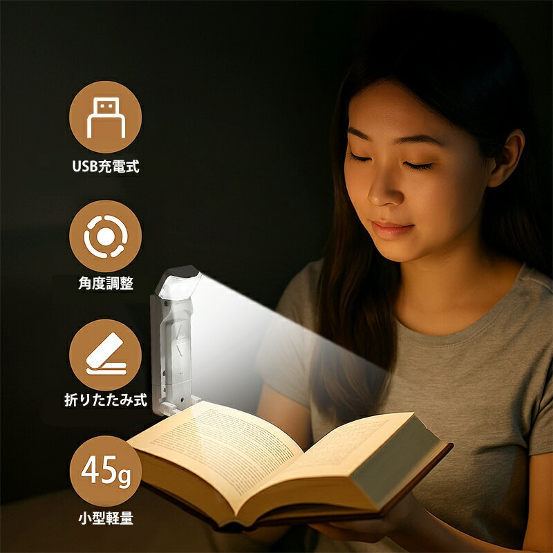 LEDクリップライト 読書灯 クリップライト ブックライト ベッドライト 目に優しい 充電式 折りたたみ式 最大80時間点灯 明るさ調整 角度調整 USB直挿し 小型 軽量 携帯便利 ブックライト 寝室・旅行・授乳・災害用 |