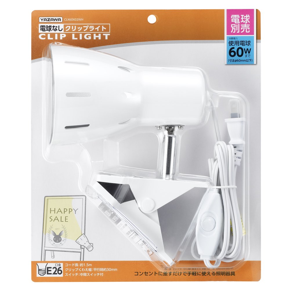 ヤザワ クリップライト E26口金 ホワイト(白色) 60Wまで (ランプ別売) 耐トラッキング性プラグ CLX60X02WH |