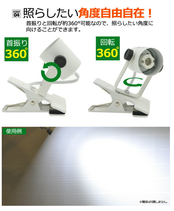 送料無料 クリップ式スポットライト照明器具/口金E11 角度調整 首振り回転360度 電源スイッチあり 場所を選ばず使用可能 簡易 ライト 仮設照明器具 クリップライト 補助照明器具 直送w |
