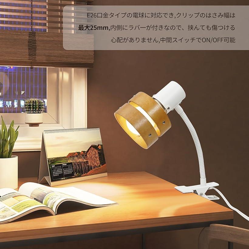 クリップライト 茶色の木製の円 E26対応 360度回転 スイッチ付き 高級 目に優しい 節電 省スペース設計 寝室 ベッドサイド デスクライト 読書用 高級レストラン照明 植物育成ライト対応 (ホワイト, 調光の電球+リモコン対応) |