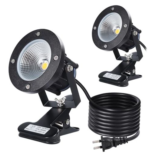 LEDクリップライト防水12W6000K白色光2個セット屋外・屋内兼用延長コード3m付き看板照明・水槽灯・作業灯(クリップライト昼光色2個) |