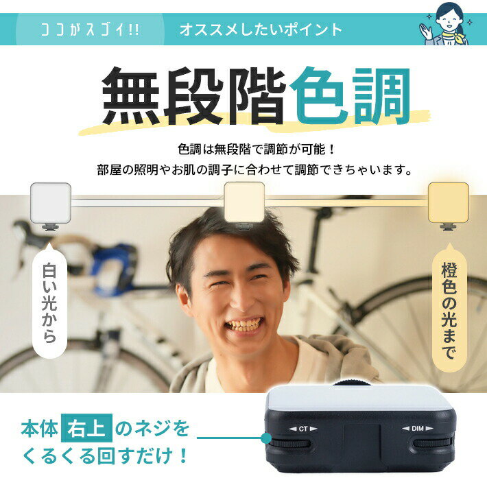 オンライン会議 LED照明 充電式 【無段階調光・色調】 自撮りライト PCライト ミーティングライト クリップライト コンパクト 持ち運び 昼白色 電球色 |